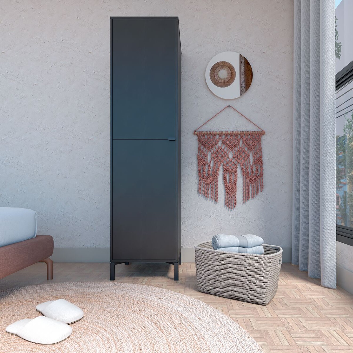 El Armario Soho es una Pieza Versátil Que Combina Diseño y Funcionalidad Excepcional, Pensada para Quienes Buscan Organizar sus Espacios sin Renunciar al Estilo. su Diseño Minimalista y Contemporáneo, con Tiradores Metálicos y Patas Estilo Industrial, Lo Distingue de Opciones Más Convencionales, Convirtiéndolo en un Complemento Elegante para Cualquier Ambiente de Tu Hogar: Dormitorios, Oficinas, Salas, Cocinas, Lavaderos o Areas de Servicio.