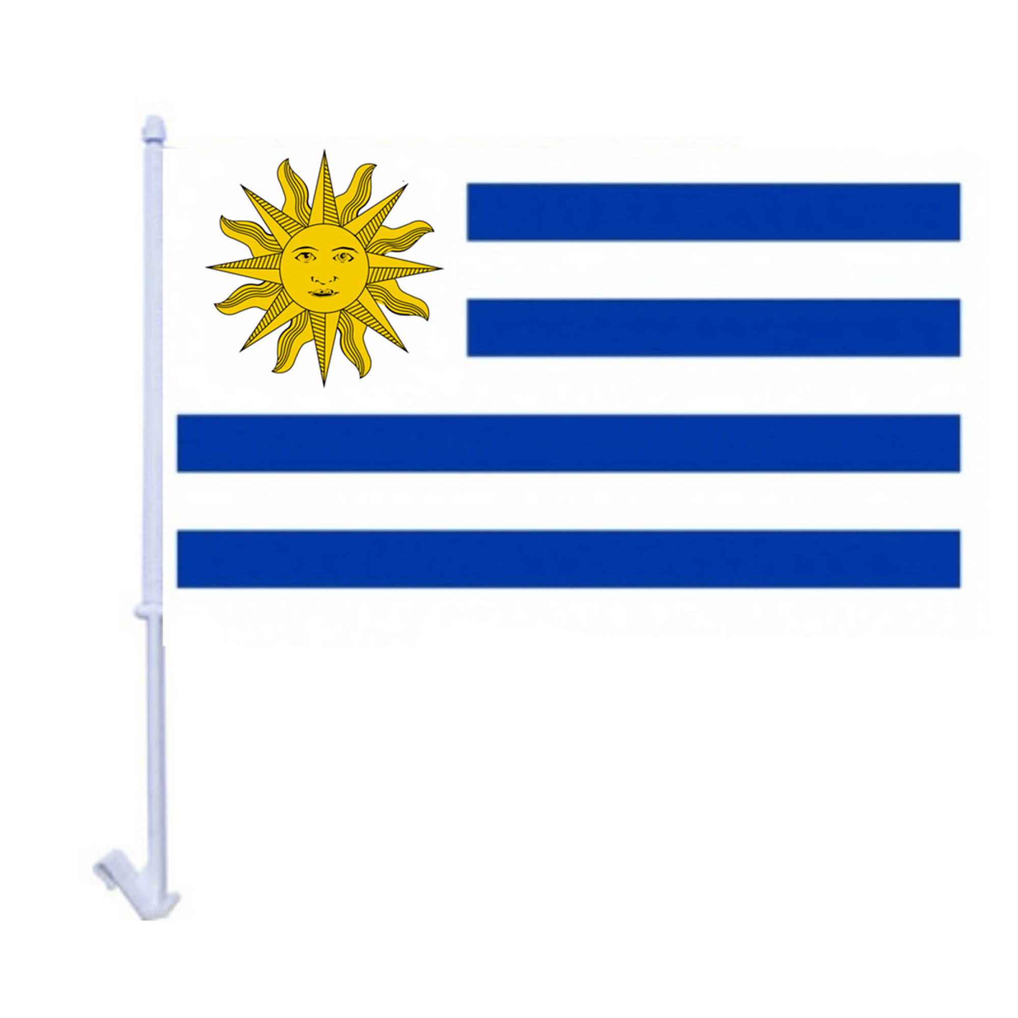 Bandera de Uruguay para Colocar en Vehículos Material: Polyester Tamaño: 30 X 45CM