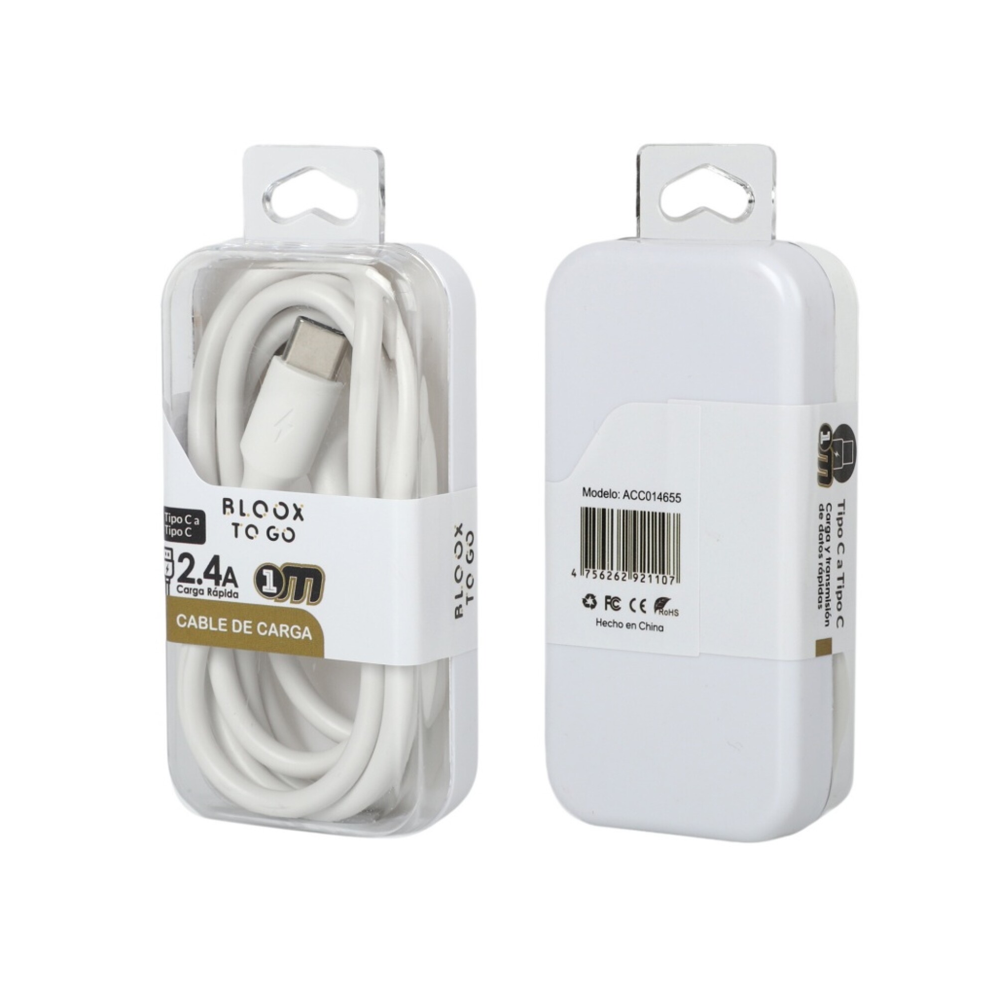 Cable De Datos Bloox Acc014655 To Go Usb C A Usb C 100Cm Ub - BLANCO