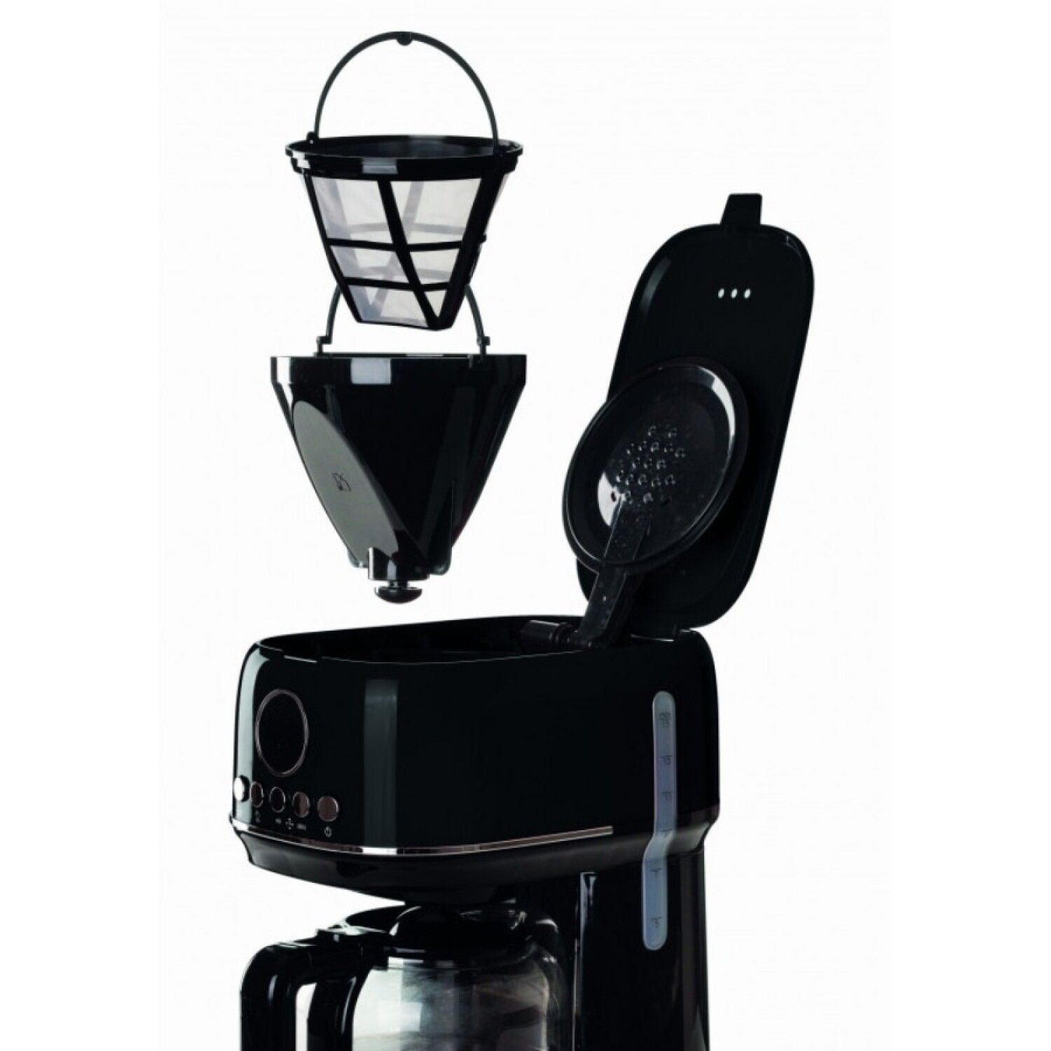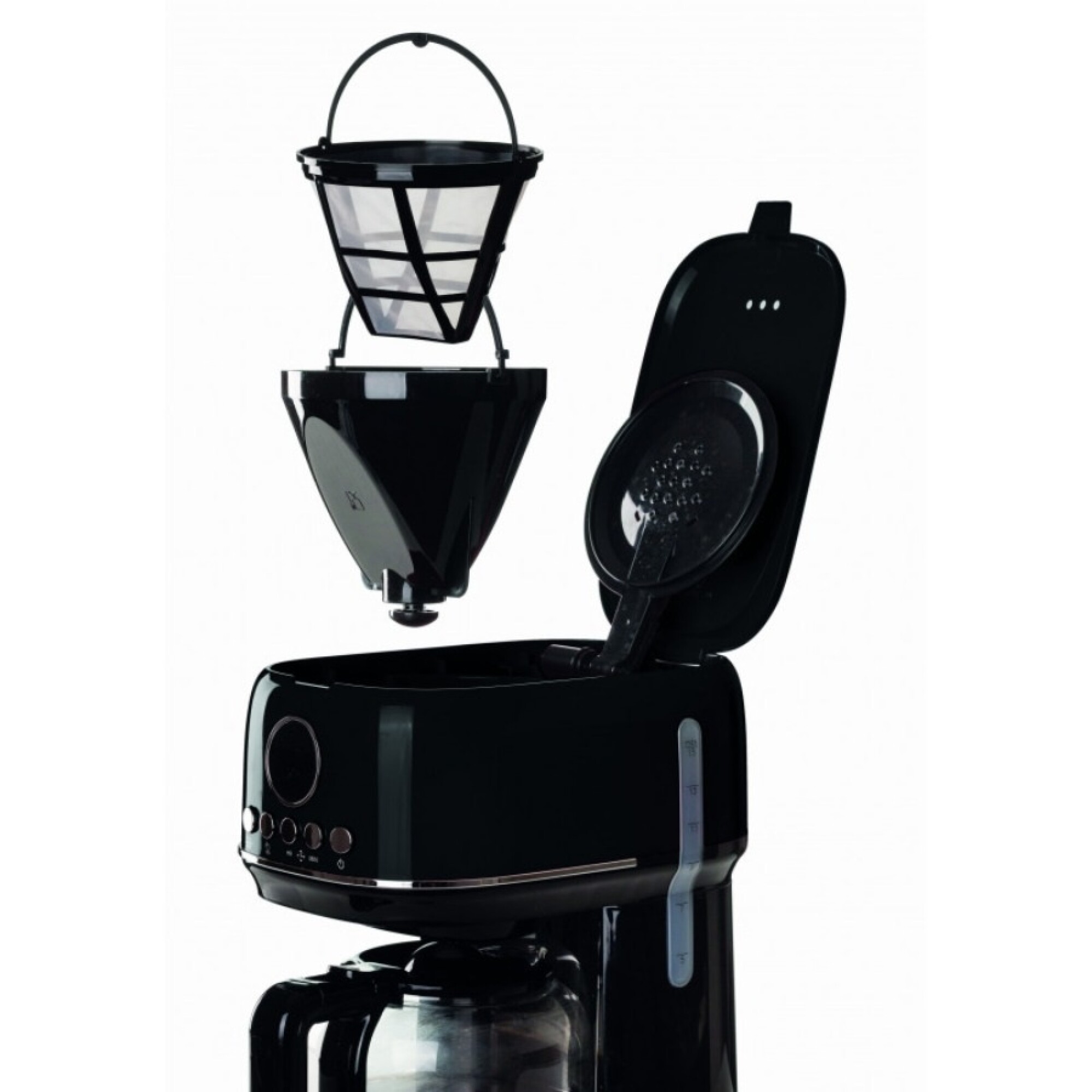 Cafetera De Goteo Modern Line Para Preparar Un Delicioso Café De Goteo A Cualquier Hora Del Día. Configure La Preparación Del Café En La Pantalla Lcd Y Espere A Que Se Prepare. Gracias A La Base Calentadora , Su Café De Goteo Se Mantiene Caliente Hasta Que Esté Listo Para Servirlo. Con Una Sola Preparación, Puede Servir Hasta 15 Tazas De Café Gracias A La Gran Capacidad De La Jarra De Vidrio Templado . El Nivel De Agua Es Visible Y Los Filtros Son Extraíbles Para Una Limpieza Fácil Y Eficaz