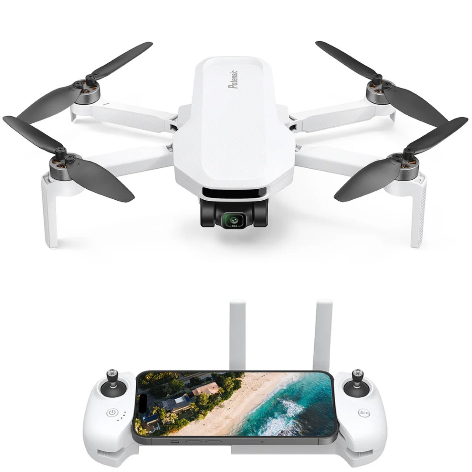Incluye 1 batería Sistema de transmisión de video PixSync 2.0 con hasta 4Km de alcance.Sensor CMOS 1/3" Sony. Fotos de 3.6MP y Video 2.5K a 30fps.Estabilizador de imagen electrónico (EIS) "ShakeVanish"Ultra compacto y estable con peso inferior a 249g.Tiempo de vuelo de hasta 40 minutos.Modos de vuelo inteligente: Follow me, Waypoint, Vuelo en círculo Smart RTH (auto retorno de emergencia)Sistema posicionamiento GNSS super preciso.3 modos de potencia: Video, Normal y DeportivoControl a través de App Potensic compatible con iOS y Android.Especificaciones:Velocidad máx: Ascenso 5 m/s, Descenso 4 m/s, Horizontal 16m/sMáxima resistencia al viento: 38 km/h (nivel 5)Altura máxima de vuelo: 120m (sujeto a regulaciones locales)Altura máxima de despegue: 4000mGPS standards: GPS + GLONASS + Galileo + BeiDouTemperatura de operación: 0 a 40° CFrecuencia de operación: 2400 a 24835 GhzVelocidad de Bits: 40 MbpsNo soporta carga de peso extraSlot MicroSD para almacenamientoTiempo de vuelo: 40 min (medido en condiciones ideales)Dimensiones: 88 x 143 x 58mm plegadoDimensiones: 300 x 242 x 58mm desplegado incluyendo hélicesPeso: Accesorios incluidos:1 x Control remoto con soporte para celular1 x Batería Li-ion 21.6Wh 7.2v 3000mAh2 x Cable de carga USB C (USB-C, Lightning)1 x Cable de carga USB A a USB C8 x Hélice de repuesto