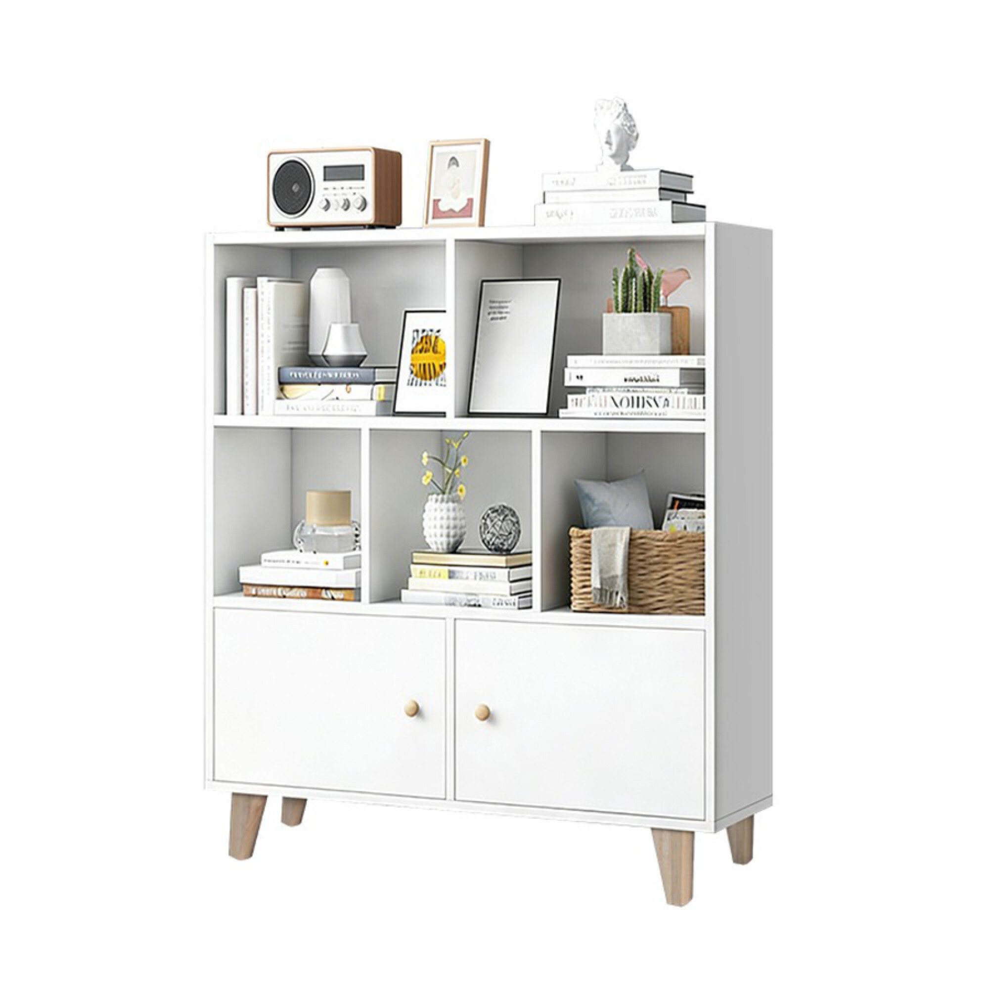 Estantería Moderna Ideal Para Organizar Libros, Objetos Decorativos Y Accesorios Del Hogar Cuenta Con 5 Estantes Abiertos Y Un Compartimento Inferior Con Puertas, Perfecto Para Mantener El Orden Y Aprovechar Mejor El Espacio Su Diseño Versátil Se Adapta Fácilmente A Living, Dormitorio, Oficina O Estudio Material: Mdf Dimensiones: 107 X 80 X 24 Cm Color: Blanco Requiere Ensamblado