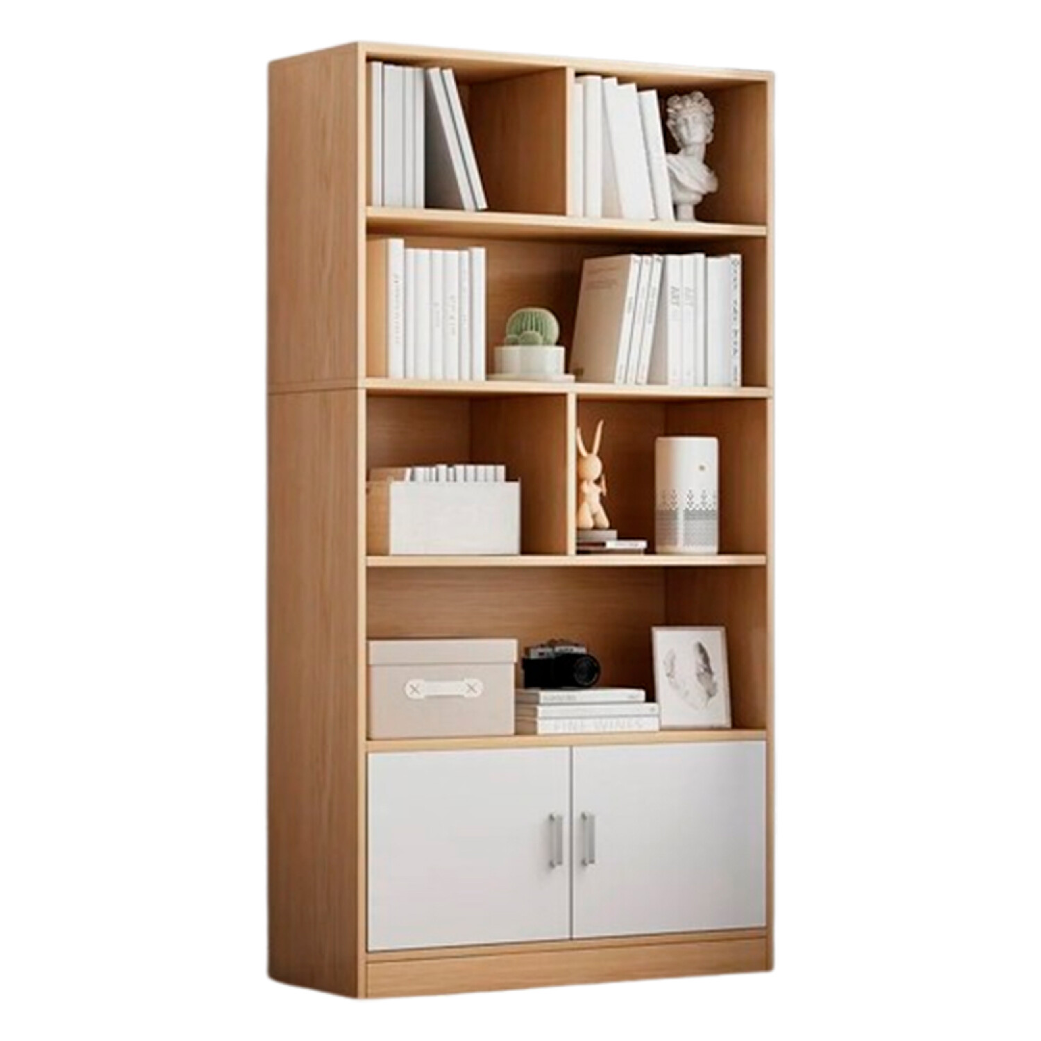 Estructura Fuerte Y Estable 4 Niveles Con Estantes Nivel Inferior Con 2 Puertas Materiales: Mdf Laminada Color: Natural Y Blanco Dimensiones: 60 X 23 X 178 Cm (Ancho X Profundidad X Altura) Requiere Armado