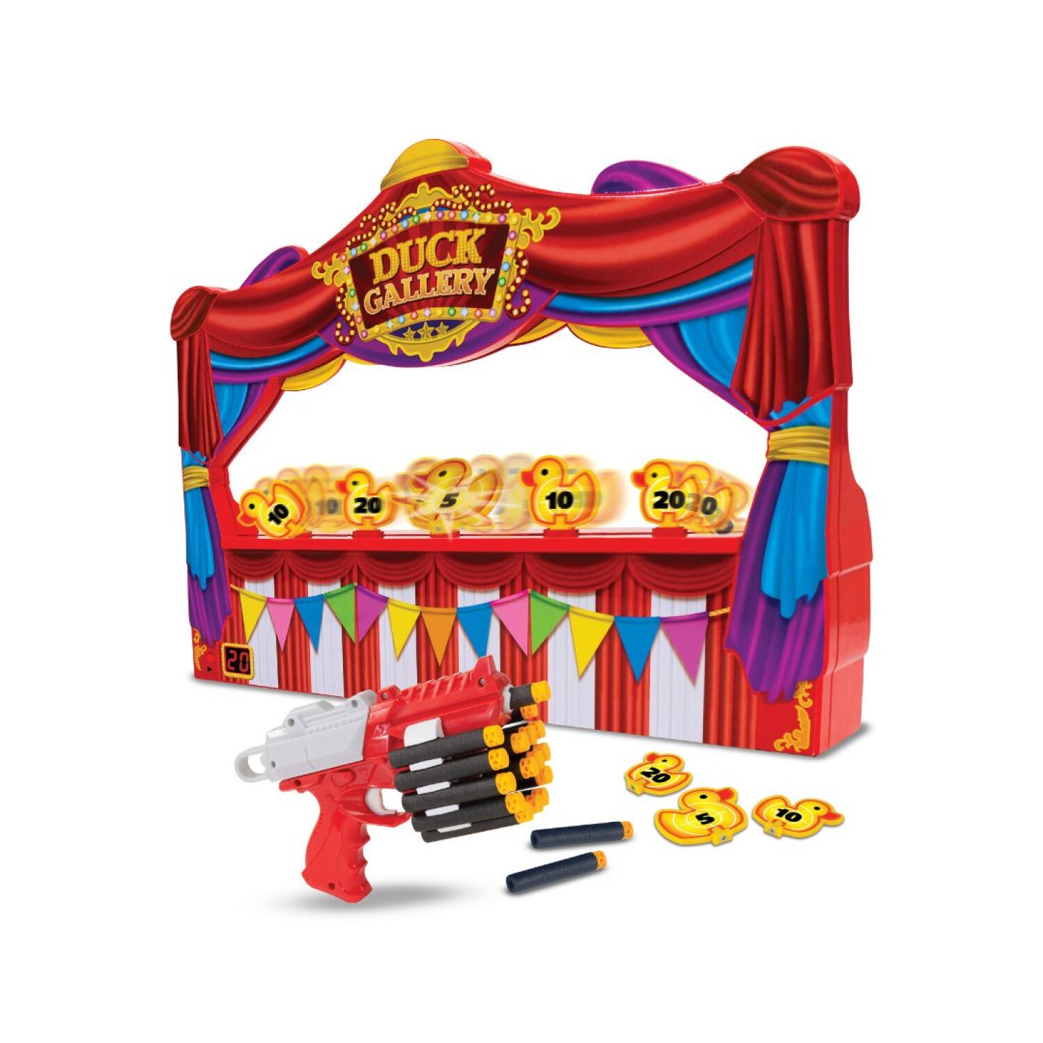 Estructura Duck Gallery, Bláster, Dardos De Espuma Y Fichas/Objetivos Con Puntaje.