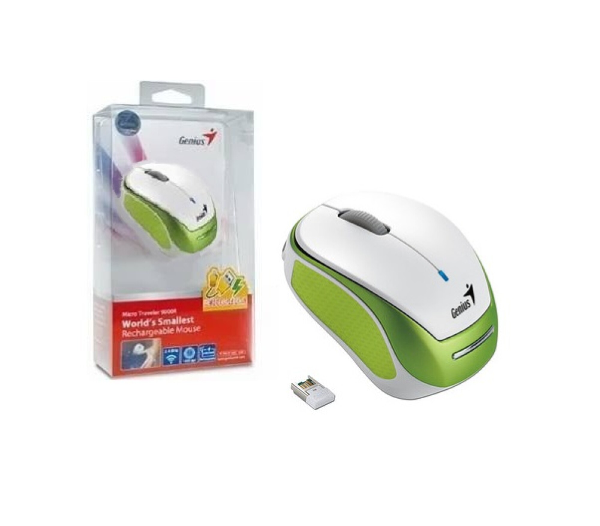 Nuevo. Modelo 9000R. Mouse inalámbrico ultra-pequeño (68mm) Tecnología inalámbrico de 2.4GHz Posee Bateria de litio recargable 240mAh. App de genius permite personalizar su dispositivo Pico receptor compatible con 6 modelos (posteriores) Stick-N-Go: Permite adjuntar el mouse a la notebook