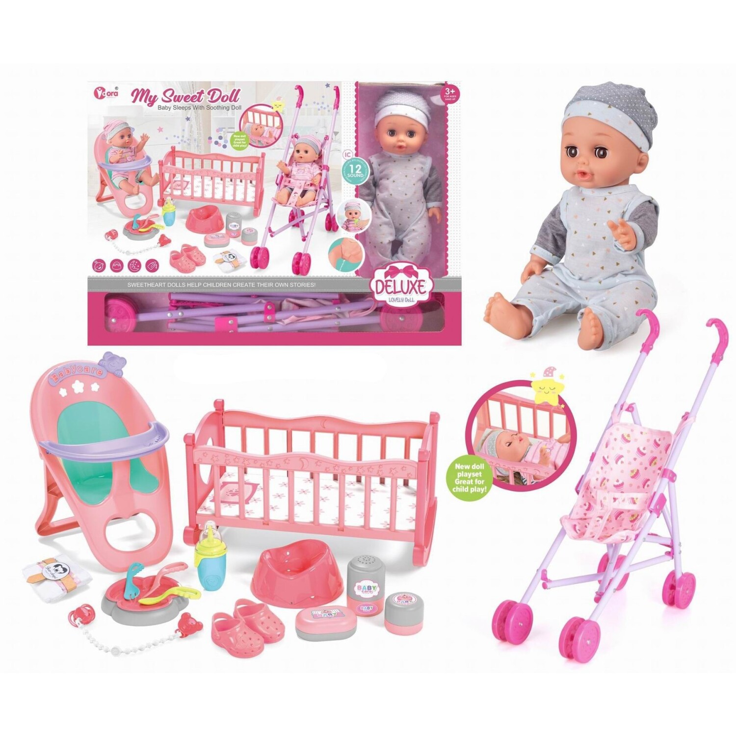 El Juego Viene Con Muñeca De Bebé De 12 Pulgadas, Una Cuna, La Silla De Comer Y Muchisimos Accesorios Más!