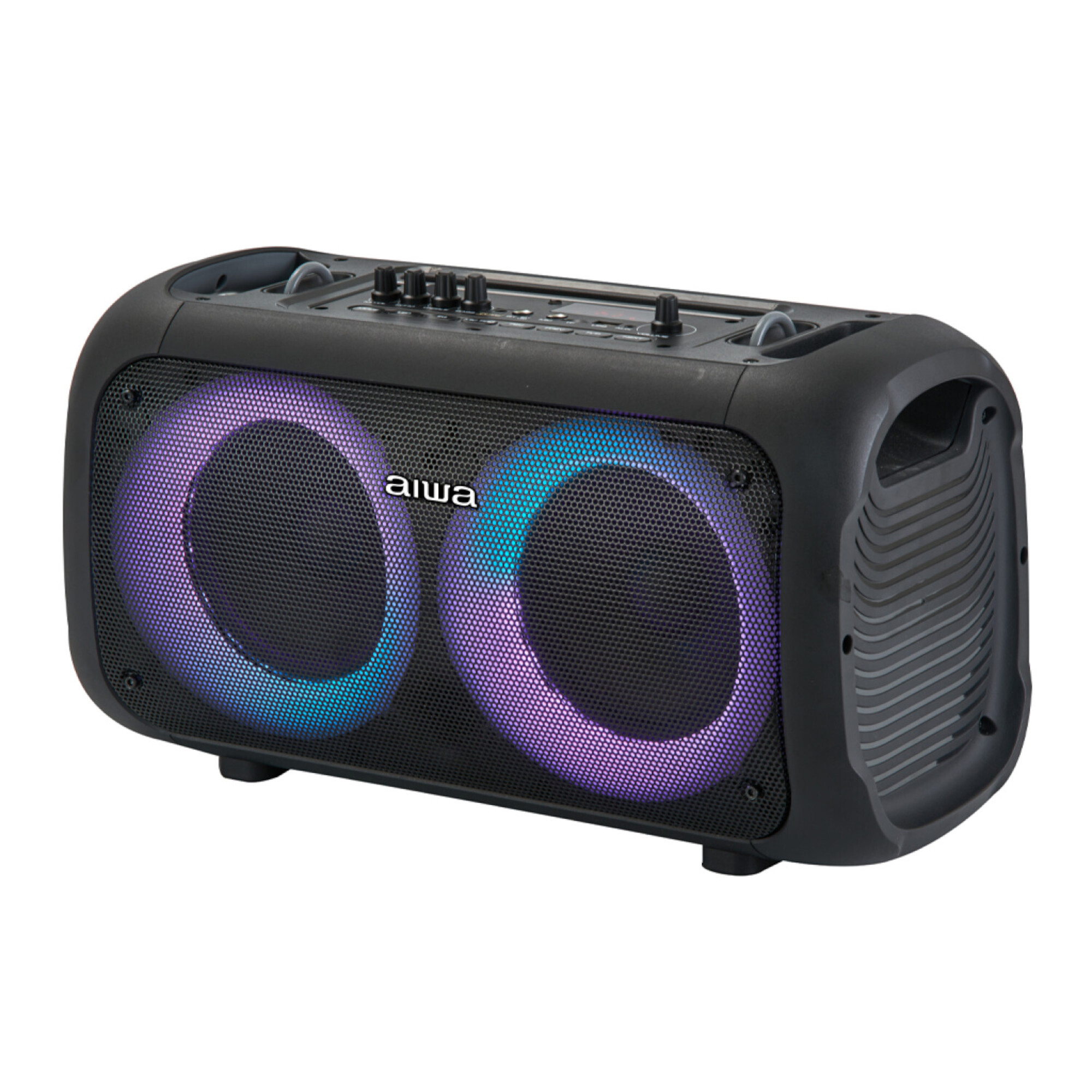 AIWA - PARLANTE INALáMBRICOAWPOH35Conectividad: BLUETOOTH 5. 0. Alcance BLUETOOTH: 15 m APROX. Potencia de Salida: 400 W. Controlador: Doble de 6,5''. Tweeter: 1 x 2". Frecuencia: 90 Hz - 20 KHz. Relación Señal / Ruido: 75 dB APROX. Pantalla LED. Luces LED de colores vibrantes para fiestas. Radio FM. Jack para guitarra. Lector de Tarjetas: TF. Soporte de micrófono con cable. Puertos: USB x 1, AUX x 1. Dimensiones: 475 x 223 x 265 mm APROX. Batería: 4400 mAh. Color: NEGRO. Garantía: 1 año. Contra Defecto de Fabricación.