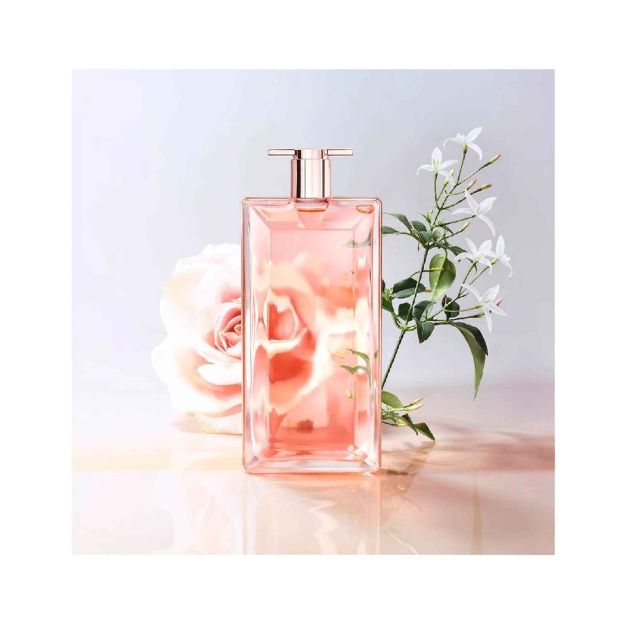 La Flor del Jazmín es una de las Flores Más Impecables y Delicadas Que se Emplean en la Perfumería. en Idôle, el Aceite de Absoluto de Jazmín se Enlaza con el Corazón de Rosas, Revelando una Suavidad Confortable, Limpia E Intensa. su Corazón Floral Da Forma al Halo de Idôle, Aportando una Luminosidad Envolvente y Sensual.