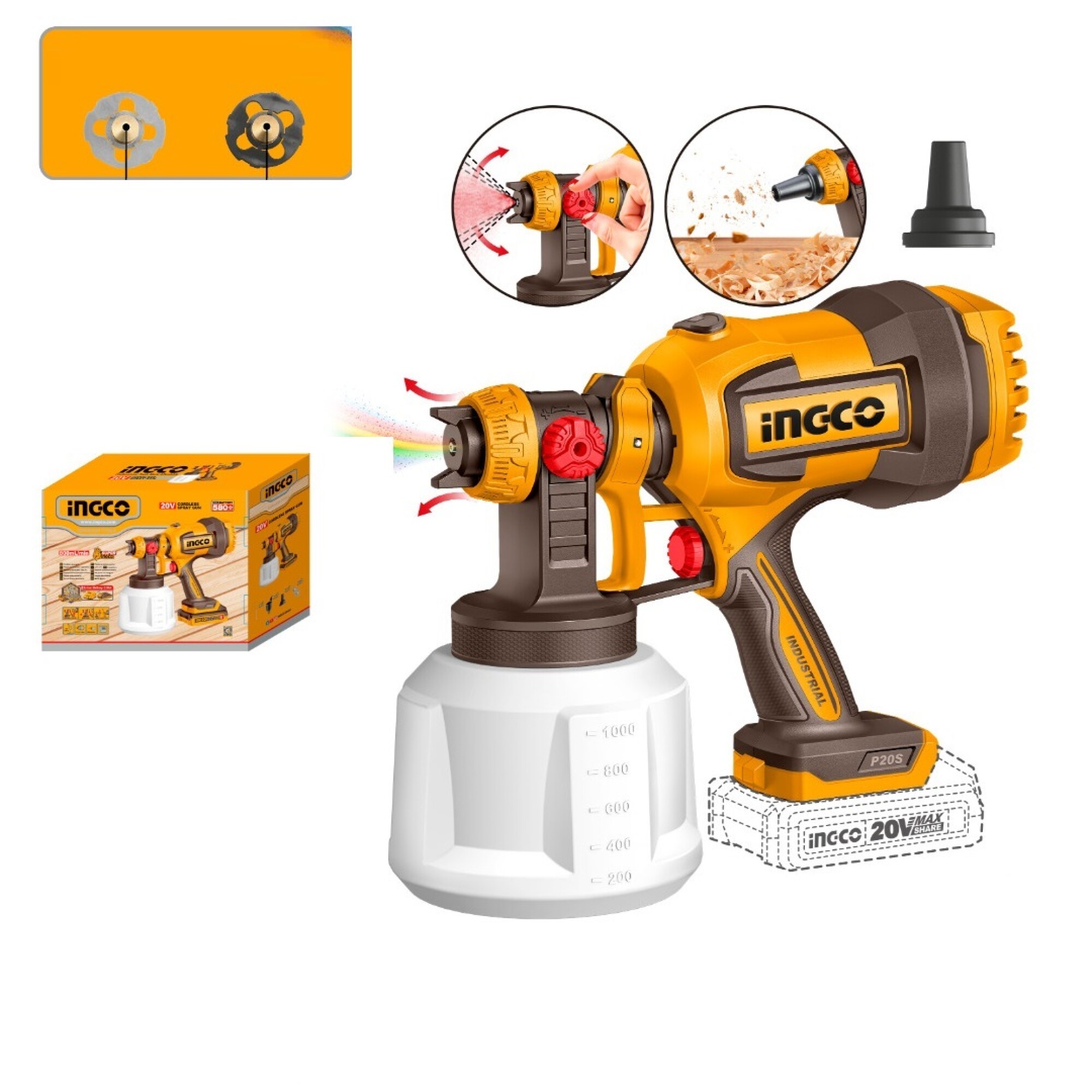 IngcoPistola Para Pintar A Batería Ingco CSGLI2004 20V P20S Pistola De Pintura A Batería P20s 20v C/Accesorios, S/Bat S/Carg -Tensión: 20v -Presión De Pulverización: 0,1-0,2bar -Caudal Máx: 800ml/Min -Max.Viscosidad: 120din-S -Capacidad Del Recipiente: 1000ml -Amplitud De Pulverización Ajustable -Incluye: -1 Pcs Boquilla Soplador De Polvo -1 Pcs Viscosidad Taza De Medición -1 Pcs Boquilla De Limpieza De La Aguja -2 Pcs Boquilla De Cobre (1.5/2.5mm) -La Batería Y El Cargador Se Venden Por Separado6942141812880001https://universobinario.com/catalogo/pistola-para-pintar-a-bateria-ingco-csgli2004-20v-p20s_6942141812880_001