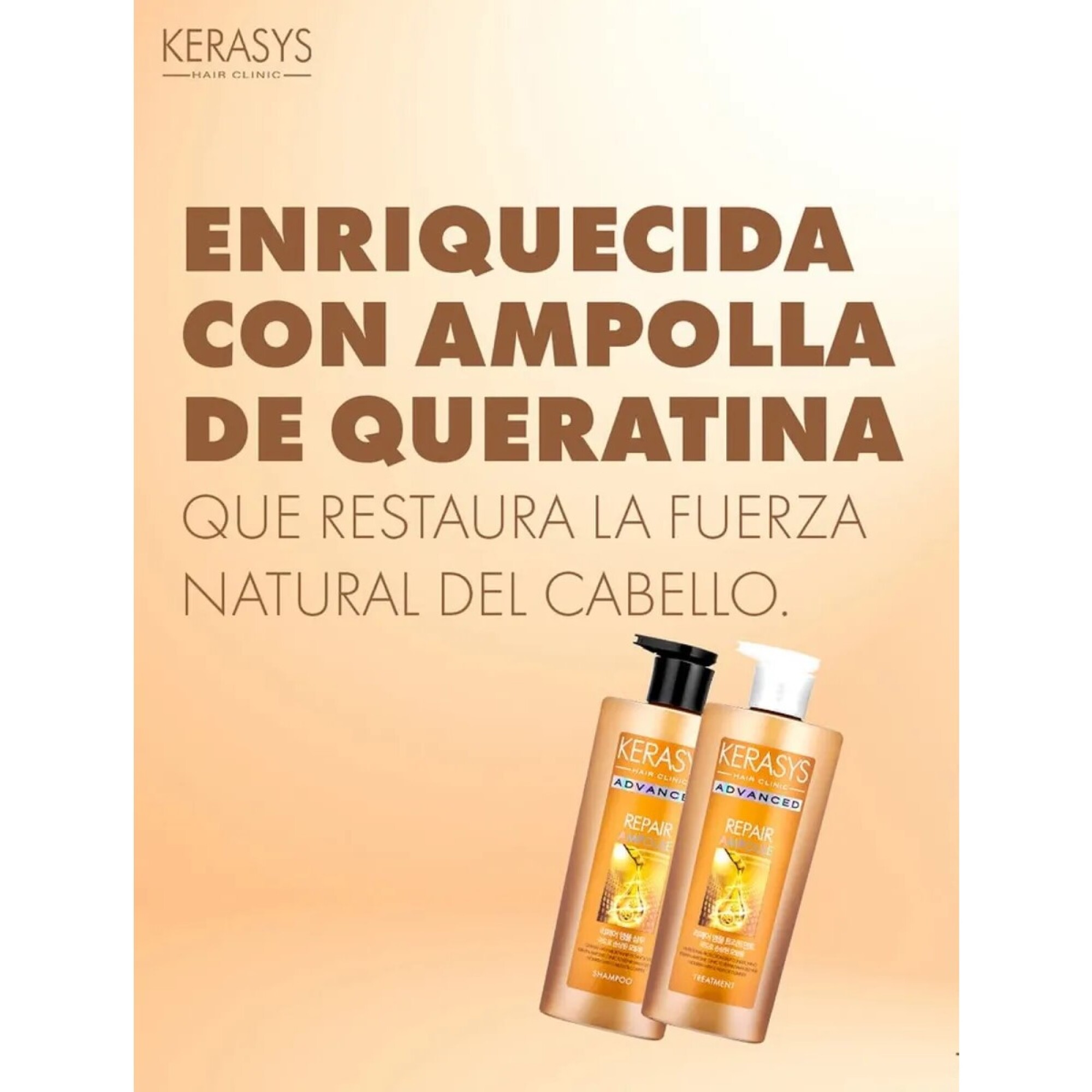 Fórmula Enriquecida con Ampolla de Keratina Que Restaura la Fuerza Natural del Cabello Aumentando su Resistencia.