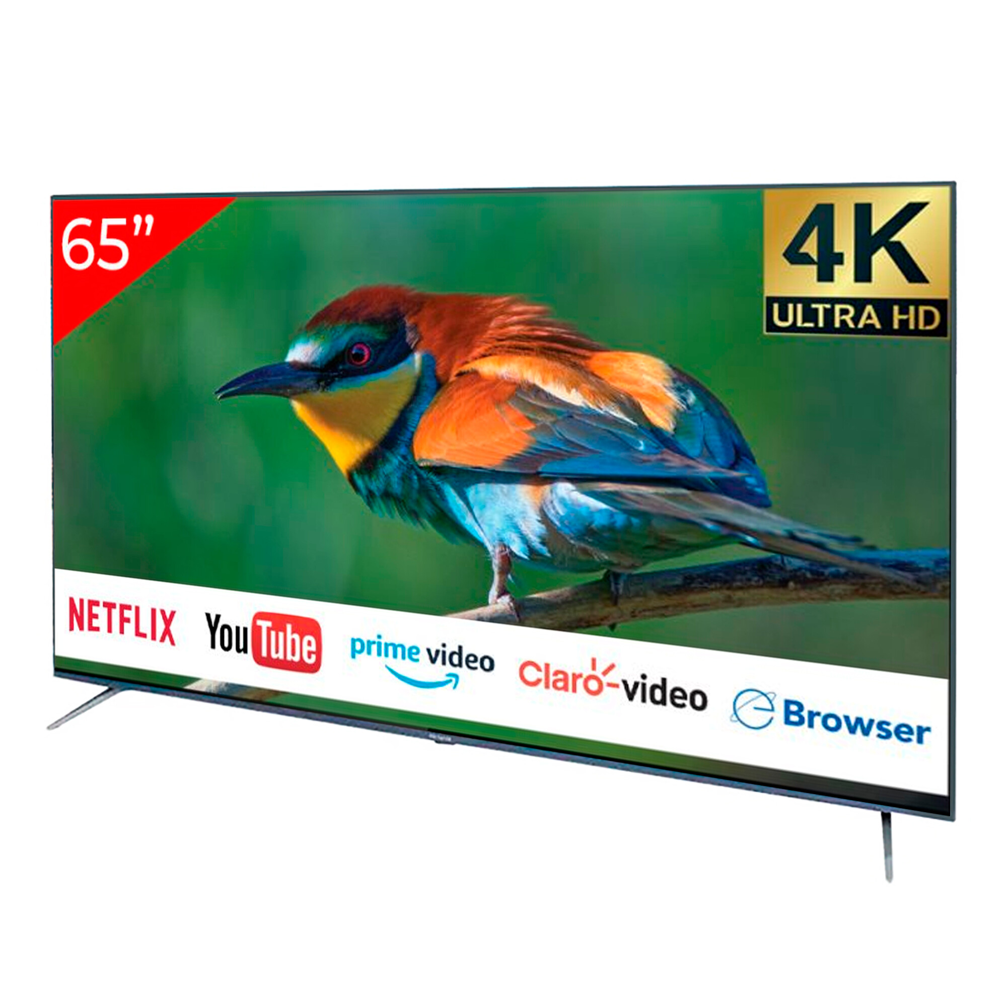 AIWA - SMART TVAW65B4KPANTALLA: 65" DLED. RESOLUCIóN: ULTRAHD 4K. Frecuencia de Actualización: 60 Hz. Conectividad: WIFI, BLUETOOTH. Sintonizador Digital: ISDBT. Calidad de Sonido: Dolby Digital. Aplicaciones Precargadas: Netflix, Youtube, Accuweather, Foxxum, Zeasn, etc. Navegador. Sistema Operativo: LINUX. Marco: METAL. Color: NEGRO. Garantía: 1 año. Contra Defecto de Fabricación.